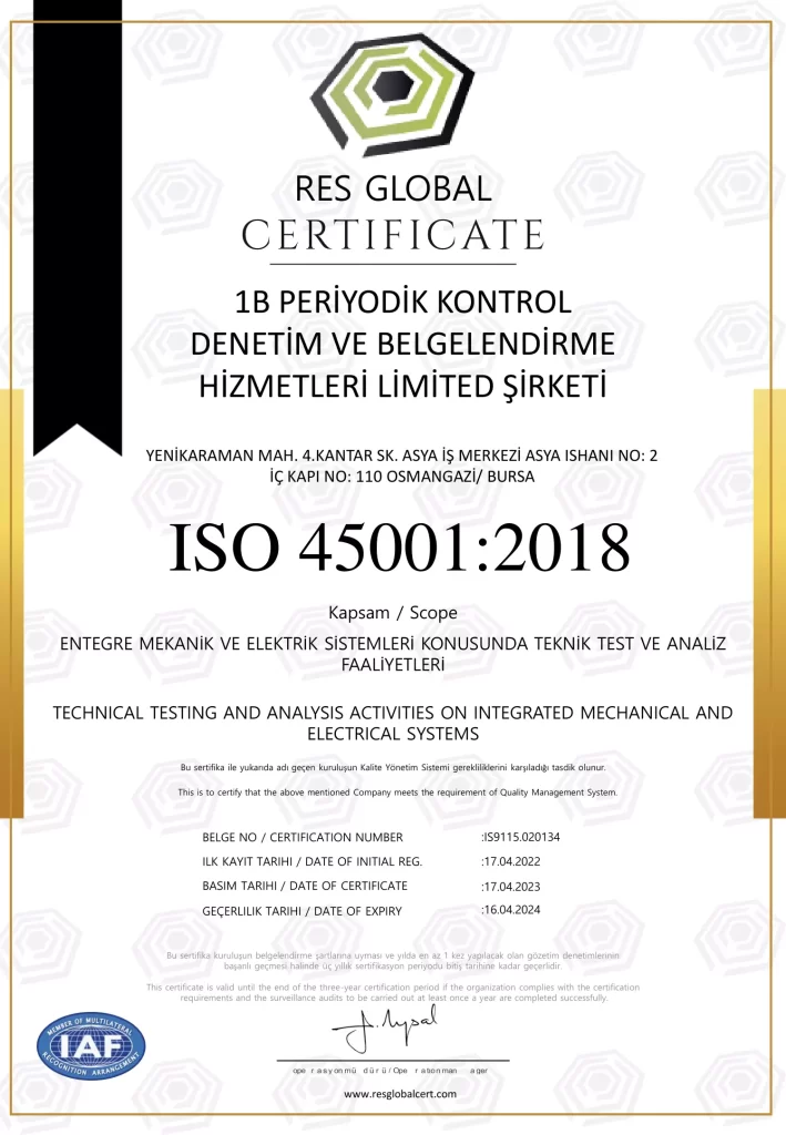 1B PERİYODİK KONTROL DENETİM VE BELGELENDİRME HİZMETLERİ LİMİTED ŞİRKETİ